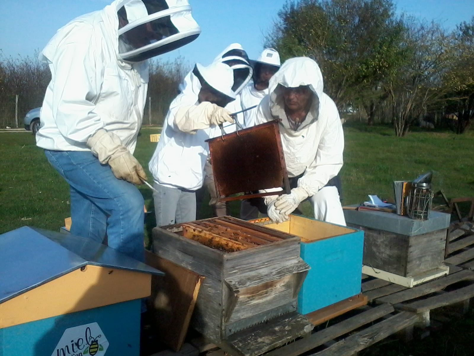Par un bel après-midi, nous voilà tous partis écouter les conseils de Francis, notre apiculteur.